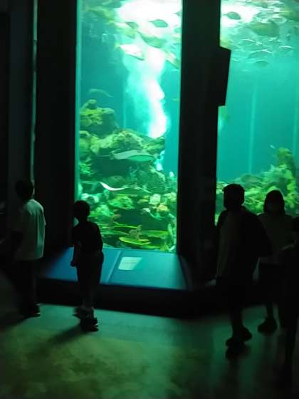 その後、みんなで夜の水族館を見学しました。うつぼが寝ていたり、夜になると砂の中に入り込む魚がいたりと、生き物の生態を学ぶことができました^_^