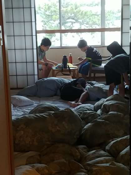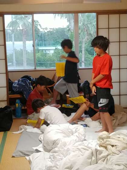 6時です。起床です。先生たちが一斉に声をかけていきました。