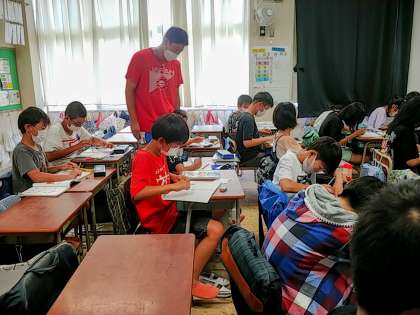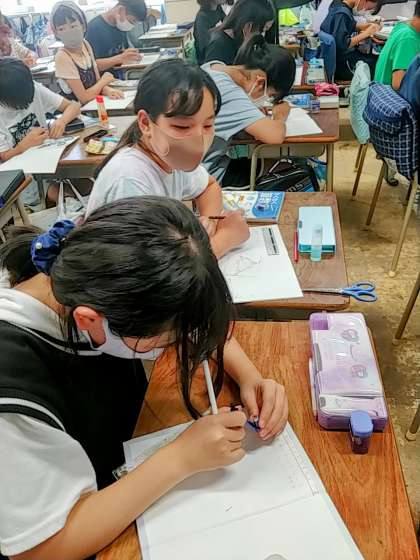 子どもたちは角の大きさを測ったり、辺の長さを調べたりしながら、ノートに合同な三角形を書いてきました。