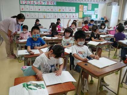 1年生は、この一学期の前半にひらがなを習ってきました。まだまだ覚えたてです。
