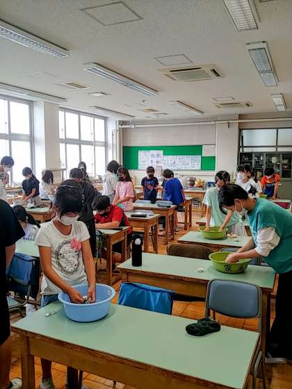 子どもたちは、最初お水のヌルヌルした感触に少し戸惑っていましたが、でもだんだんと慣れてきて、上手に自分の靴下を手洗いすることができました!
