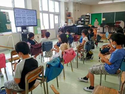 4年生の一つのクラスでは、音楽で、「陽気な船長」という楽しい曲の合奏に取り組んでいます。