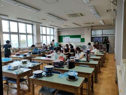 そして、夕方には、3年生の保護者のみなさんが、3年生のエイサーで使う太鼓の紐通りししていただきました。