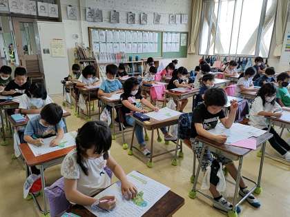 「さあ、いよいよ初めてのテストをしますよ。みなさん、ドキドキするかもしれないけど、がんばってくださいね!」