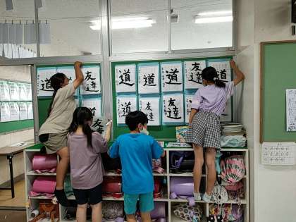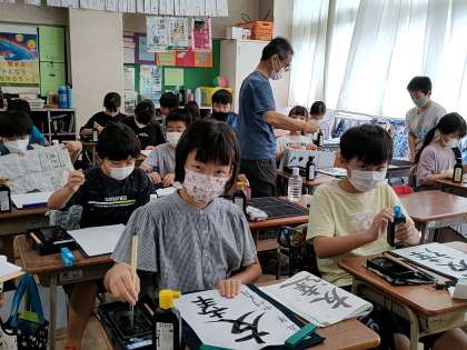5年生の1つのクラスでは、書写で、「友達」という文字を書いていました。