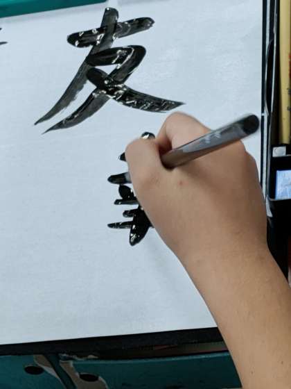 「友達」は、とても難易度の高い文字です。「友」には、右払いがあります。「達」は、画数が多く、しんにょうがあります。文字の大きさのバランスも難しいですね。