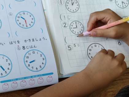 1年生の1つのクラスでは、算数で「なんじなんじはん」の学習をしました。