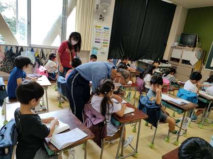子どもたちは、まず先生から教えてもらった後で、練習問題に取り組んでいました^_^