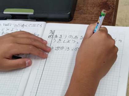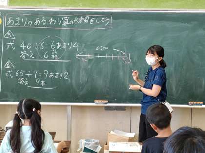 3年生は、今日、算数で「あまりのあるわり算」に取り組んでいました。「あまりのあるわり算」のやり方はこれまでの算数で学習してきましたので、今日は練習問題にたくさん取り組みました。