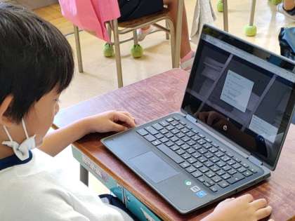 1年生は、2学期に入り、いよいよタブレット端末を始めます。