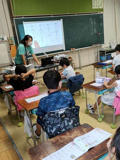 1年生の1つのクラスでは、国語で漢字の学習をしていました。