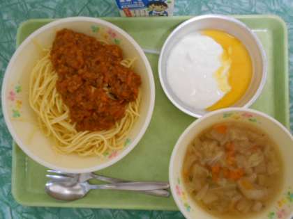 スパゲティミートソースは、みんな本当によく食べる献立の一つです。