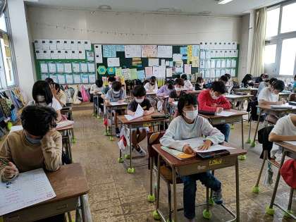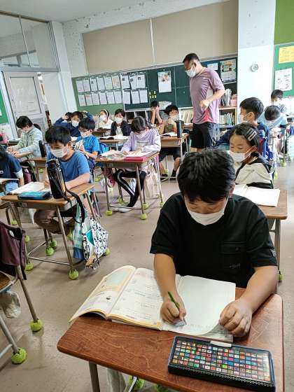テストの様子を見ていると、多くの子が途中式をしっかりと書いていました。
