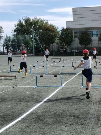 5年生の1つのクラスでは、体育で「ハードル走」に取り組み始めました。