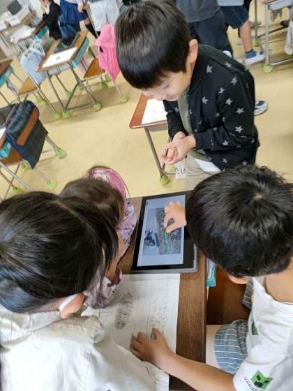 そして、だんごむしが取れた場所やダンゴムシの様子をタブレットで写真におさめました。