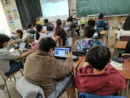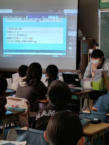 授業では、子どもたちから、昨日の晩ごはんを思い出してもらい、それをオクリンクというソフトを使って、全体で共有しました。