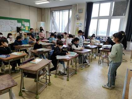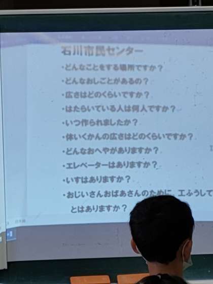 2年生の1つのクラスでは、生活科で今週の金曜日に探検に行く市民センターと小宮駅の人に質問を考えていました。