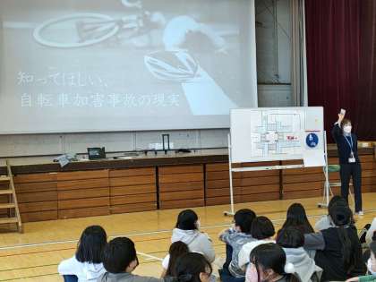 今日も、3年生のときに学習した自転車に乗るときの確認事項を再度確認し、その後、自転車による事故がいかに大変なことなのかを教えてもらいました。