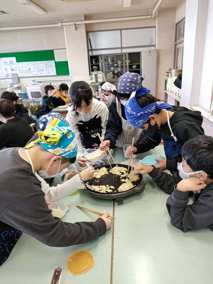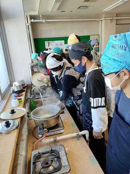 6年生は、家庭科で「調理実習」を行いました。今日は2つのクラスがおこないました。