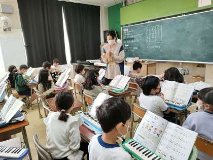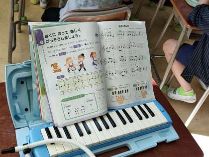 最終的には、合奏につなげていきますが、今日のところは、まず鍵盤ハーモニカで主旋律を弾くことを目標に、何度も鍵盤ハーモニカを練習していました。