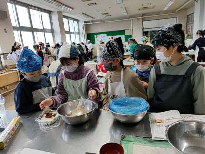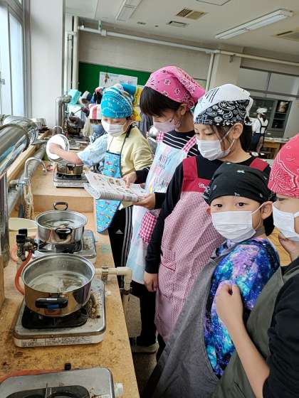 今日は5年生の1つのクラスが、家庭科で「調理実習」を行いました。