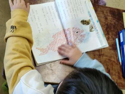 1年生の国語は、有名な「スイミー」です。この作品に説明はいりませんね。端的な言葉で表現され、そしてテーマが深いですね!