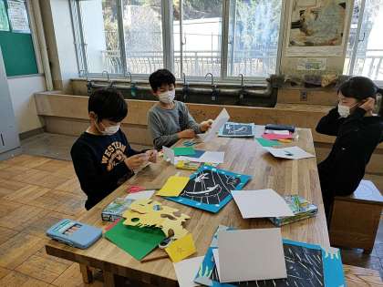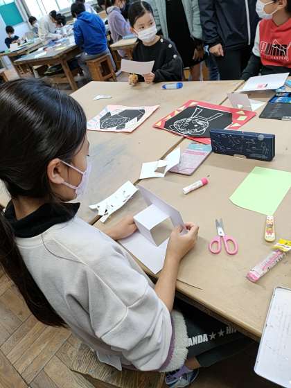 4年生は図工で「ハッピーカード」を作っていました。ちょうど版画が終わって、少し時間ができたので、版画が終わった子から作っています。