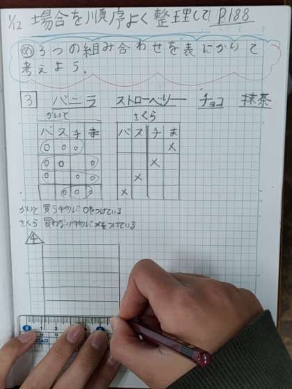 6年生の1つのクラスでは、算数で「組み合わせ」の学習をしていました。