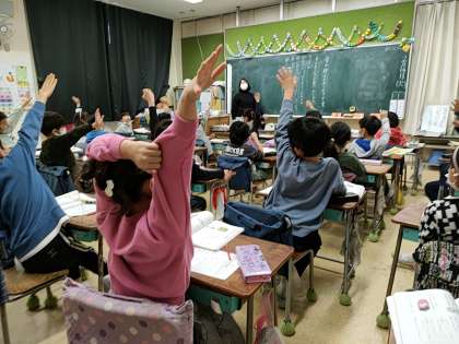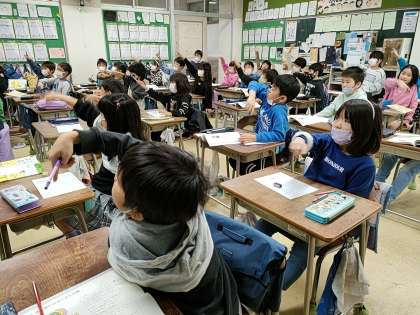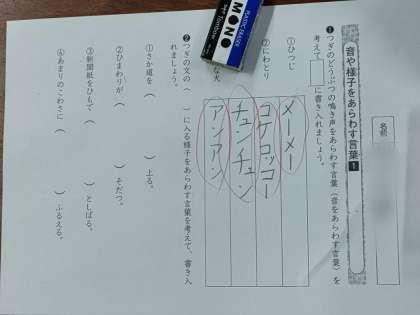 2年生の1つのクラスでは、国語で「様子や音を表す言葉」の学習をしていました。