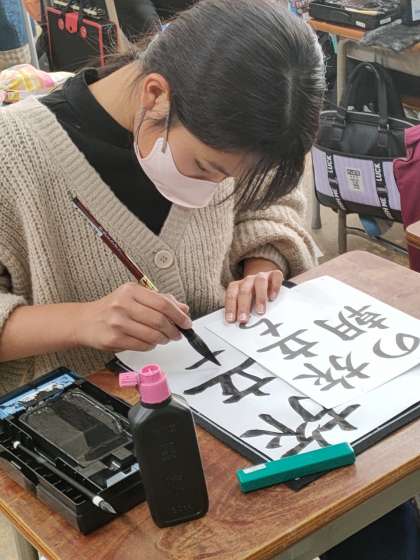 小学校の毛筆は、硬筆を上手に書くために行っていますので、文字数によって大きさを調節してバランスよく書く力をつけてほしいです。