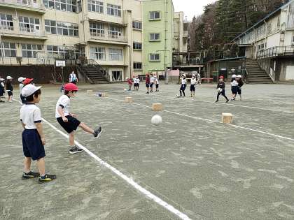 3月6日 1年生 体育「ボールけりあそび」