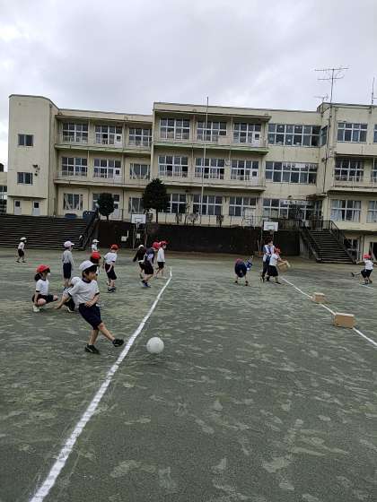 1年生の1つのクラスでは、体育で「ボールけりあそび」をしました。