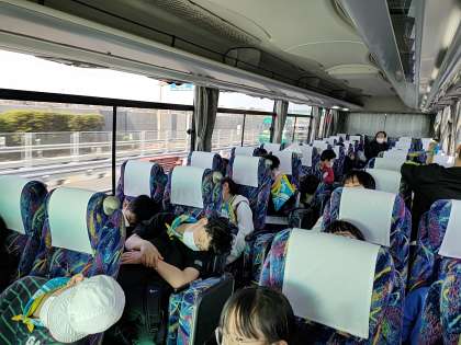 バスの中では子どもたちの元気な声が聞こえています。見ていると遊んでいるような話しているような‥(笑)