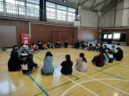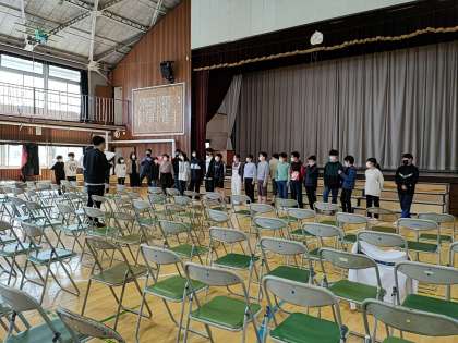 今日、6年生は体育館で卒業式の最後に伝える「門出の言葉」の練習をしていました。