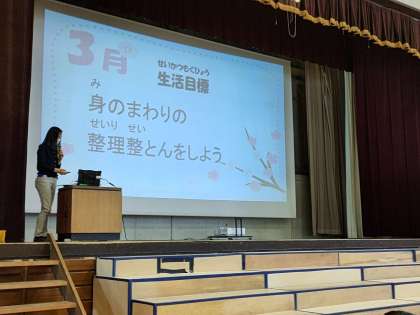 最後に、今月の生活目標についてのお話がありました。整理整頓の仕方を丁寧に教えてもらいました。