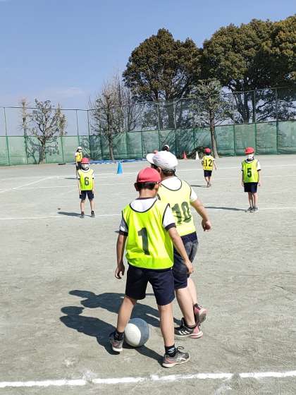 各チームごとに、練習を工夫して、サッカーが上手な子が優しくパスを出したり、教えてあげたりするなど、とてもいいチーム練習をしていました。