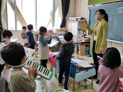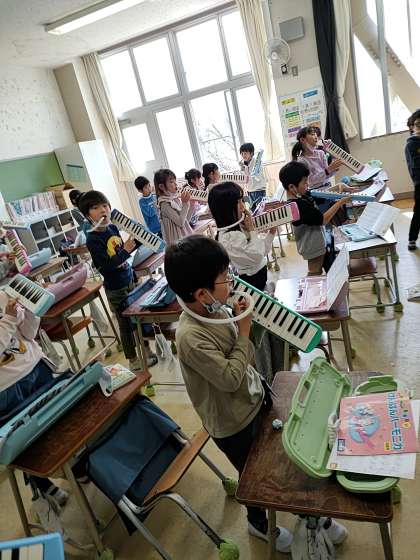 1年生の1つのクラスでは、音楽で「わたしのおきにいり」を鍵盤ハーモニカで演奏をしていました。