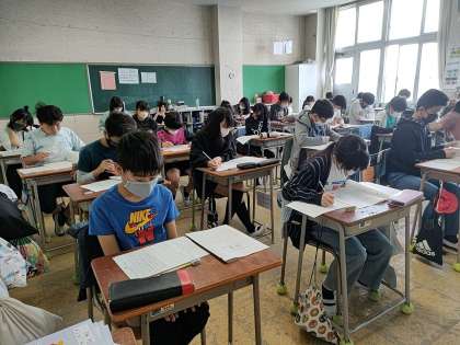 学校では、6年生が集中できるように、チャイムを切り、1日ノーチャイムで応援しました。
