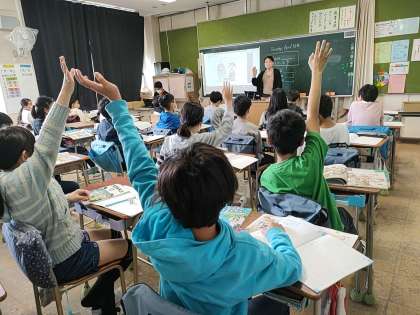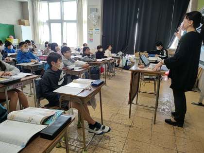 そして先生も外国語の担当の先生がやってきます。なんだか中学校みたいですね!