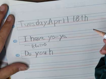 そんなわけでまだ緊張感が子どもたちを包んでいますが、少しずつ英語の歌やスピーキングの声が出るようになりました。
