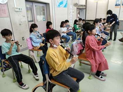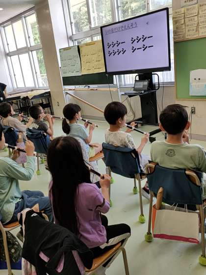 まだ音楽の授業が始まって、2時間程度なのに、もう3曲もふけるようになっていました(^o^)