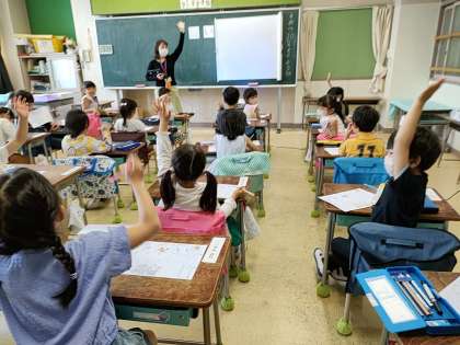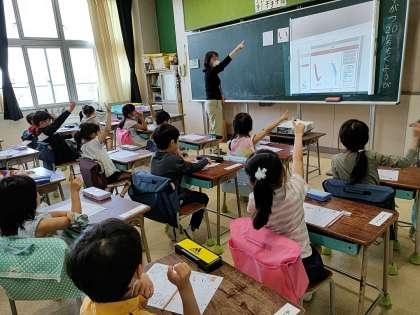 1年生の1つのクラスでは、国語でひらがなの「い」の学習をしていました。