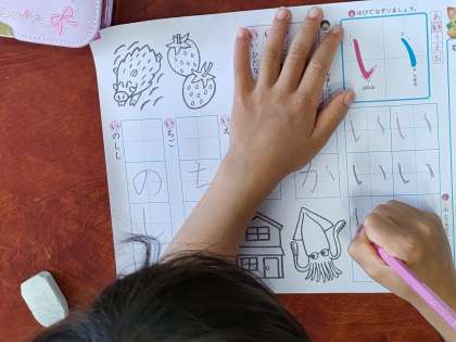 次に、「い」の学習です!「い」を見た子たちが、すかさず
