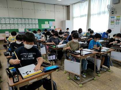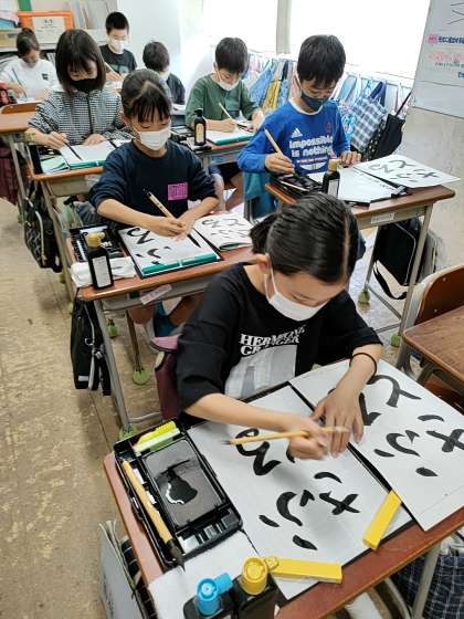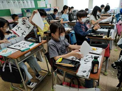 5年生の1つのクラスでは、書写で、「ふるさと」という文字を、書いていました。