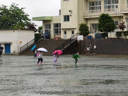 そんな肌寒い雨の中で登校してきた子どもたちですが、時折変な子がいました(笑)