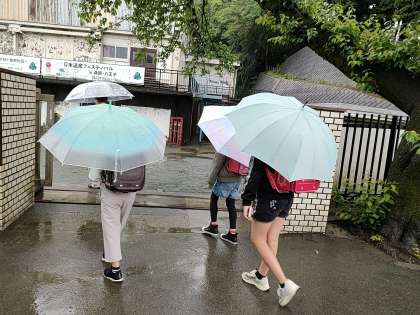 それは傘を持っているのにささないで、杖のように使っている子がいたことです。