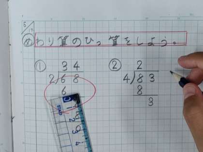 そして、今日はちょっとイジワルなわり算の問題に挑戦しました。
