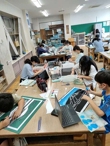 この教材は、6年生を代表する教材で、作り上げるのも時間がかかります。ですから、クラスによって、図工がお休みでなくなったりすると、進むスピードが違ってきます。