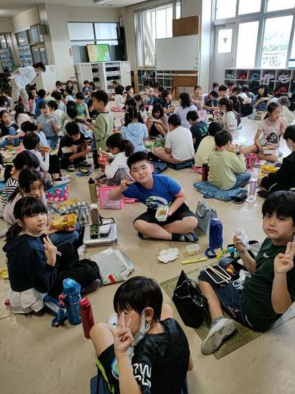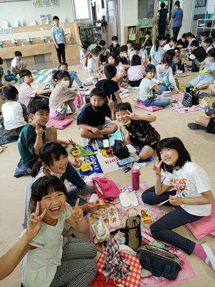 今日は、お弁当なので、教室ではなく、オープンスペースで、遠足のように食べることになりました^_^