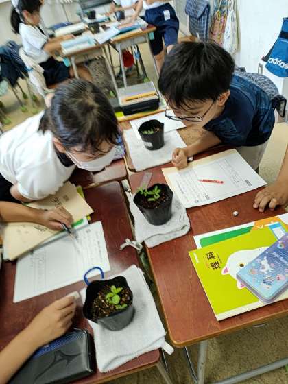 3年生の1つのクラスでは、理科で「植物の成長の観察」を行いました。